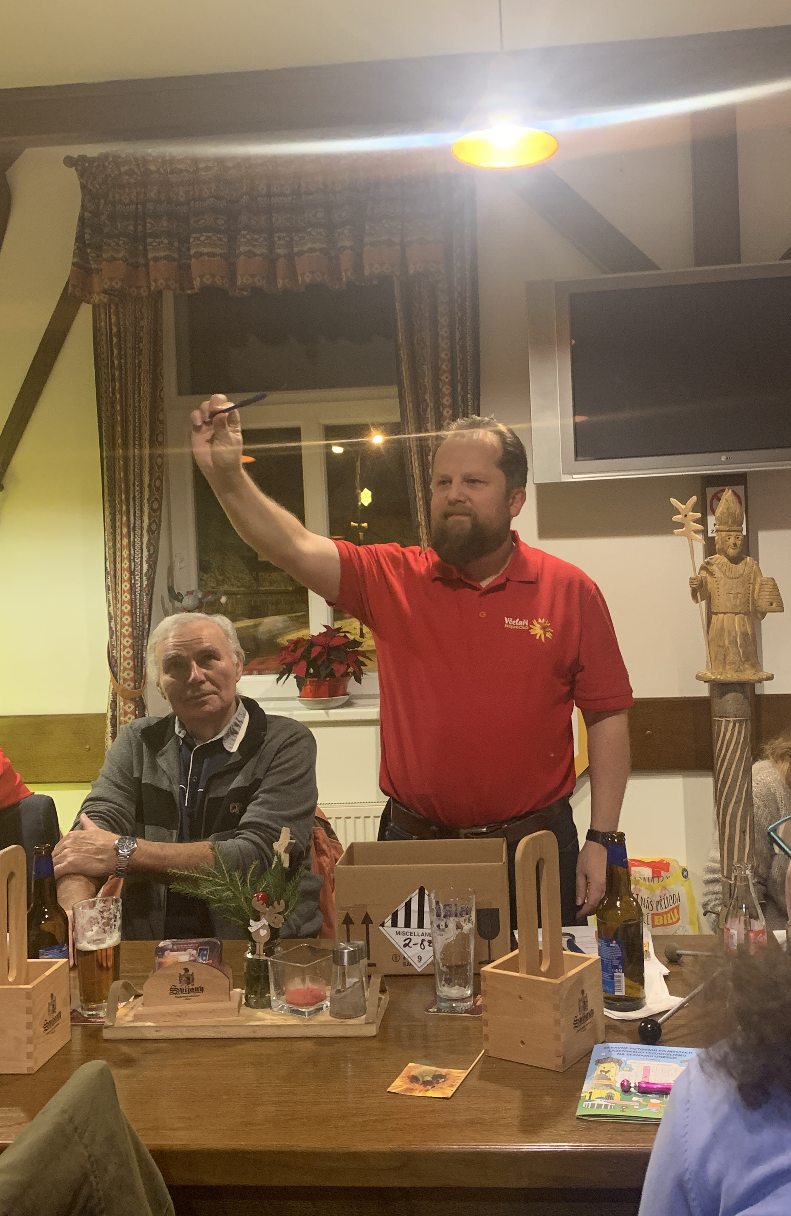 V sobotu dne 3.12.2022 jsme se kolem 16. hodiny sešli na vánočním včelařském večírku našeho spolku v restauraci Seifert v Nových Hamrech. Nakonec nás bylo více jak 30 a to nejen včelařů, ale pozvání přijali také vzácní rodinní příšlušníci, kteří nám s naším koníčkem nezjištně každý rok trpělivě pomáhají. Kdo chtěl mohl přinést na ochutnání něco sladkého, nejlépe medového, a tak jsme ochutnali perníčky, plněné rohlíčky i koláč. Atmosféru mile zpříjemnila hudební skupina Pavla Šťastného a jeho kamarádů, kteří nám hráli na kytaru české písničky a dokonce zazpívali i Včelku Máju. Pro nevčelaře byl v rámci programu připraven "záludný" kvíz se sedmnácti otázkami např. jakou barvu včela nevidí, jak uhyne trubec, kolik květin musí včela opylovat na 0,5 kg medu a spousty dalšího. Většina soutěžících byla následně z některých správných odpovědí celkem překvapena, ale příště budou určitě zase o něco chytřejší. Čtyři nejlepší postoupili do druhého kola, ve kterém měli měli za úkol poznat několik včelařských předmětů jako byla např. vychytávací klícka, pomůcka na značení matek nebo rozpěrák. Vítězem celého kvízu se stala slečna Adéle Hladká, na druhé místě se umístila paní Duchanová a třetí byl pan Žák. Všichni obdrželi drobné ceny a zvláštní cenu dostal i včelař od vítězky.