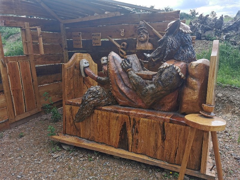 V sobotu dne 11.6.2022 se uskutečnil plánovaný jednodenní výlet našeho včelařského spolku do Německa do Blockhausenu na výstavu dřevěných soch v přírodě a na návštěvu k místnímu včelaři. Kromě členů spolku se účastnili i rodinní příslušníci a příznivci včelaření i řezbářství. Odjezd byl ráno v 07:30 hod. z nejdeckého autobusového nádraží minibusem fa. Cvinger bus s.r.o., a za cca 2 hodinky jízdy jsme byli na místě. Z parkoviště vedla příjemná procházka podél lesa s naučnou včelařskou stezkou, prvními dřevěnými sochami a řadou vyřezávaných laviček k odpočinku. Postupně přibývalo soch zasazených tematicky v lese až k louce, na které probíhala realisticky působící bitva vikingů s místními obyvateli. Sochy byly nádherné a detailně propracované. O kousek dál byly sochy znázorňující znamení zvěrokruhu, hornické městečko a následovalo nové téma - soch z pohádek bratří Grimmů v moderním pojatí. Moderní červená Karkulka dělající si selfie s vlkem, který ležel v posteli a něco hledal na notebooku, Jeníček s Mařenkou a Ježibabou, Sněhurka se 7 trpaslíky a další. Postupně jsme došli k několika srubům, kde byla restaurace, občerstvení a obrovský stůl z jednoho kmene o délce přes 40 m, na který se údajně vešlo 10.000 lahví místního piva. Před několika dny zde skončilo další sympozium, na který se sjíždějí řezbáři z celého světa, např. USA, Japonska, Norska, Ukrajiny a dokonce i z ČR. Letošní téma byli Indiáni, šamani, druidi a mezi nimi i moravský Radegast. Kromě toho jsme obdivovali řadu bojovníků a rytířů na koních, bájné draky a saně. V stánku s občerstvením jsme ochutnali místní wurst a pivo.